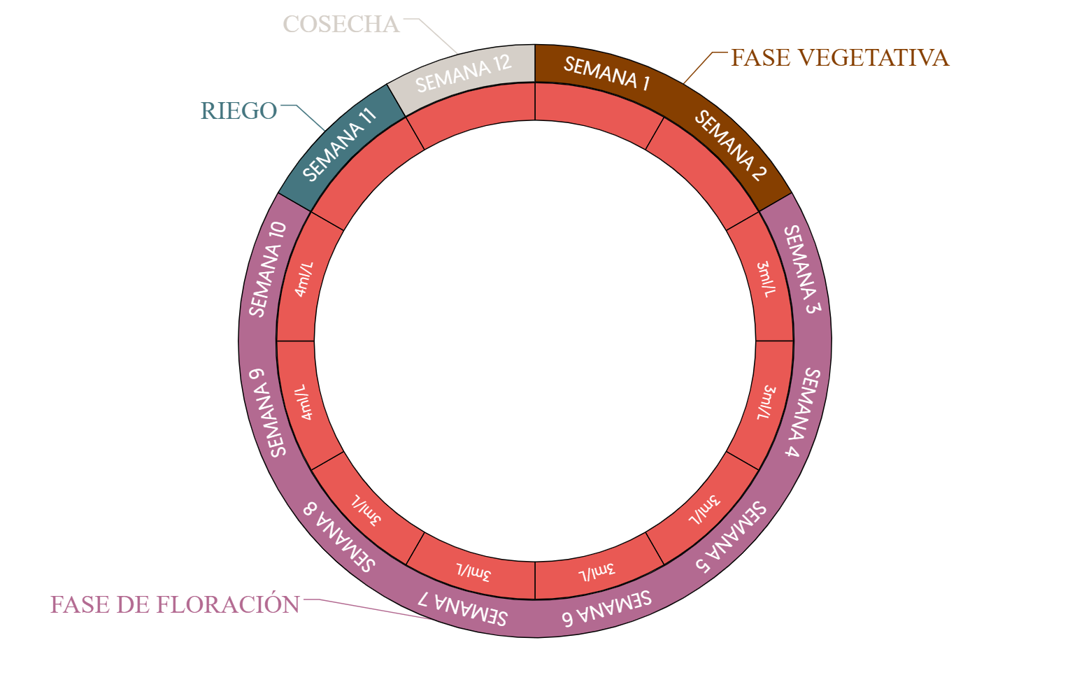 floración, hasta la cosecha, en cualquier medio de